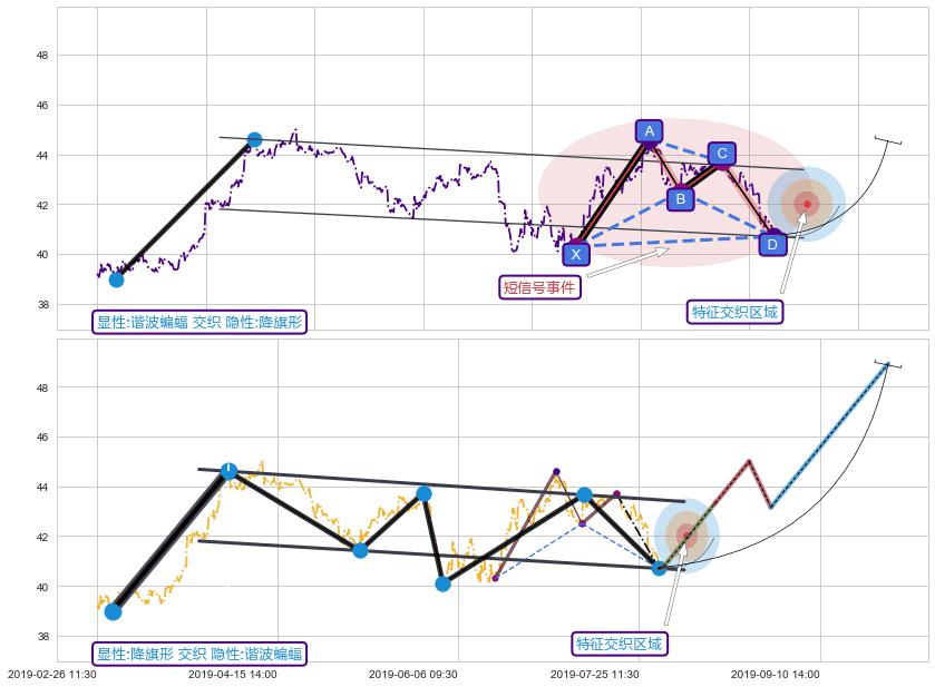 ➢ 谐波蝙蝠属【短级别信号事件】降旗形属【长级别信号事件】长短周期组合信号事件, 短长事件长度比29.79%