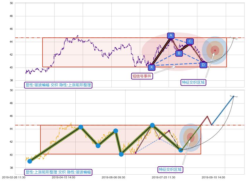 ➢ 谐波蝙蝠属【短级别信号事件】上涨矩形整理属【长级别信号事件】长短周期组合信号事件, 短长事件长度比29.79%