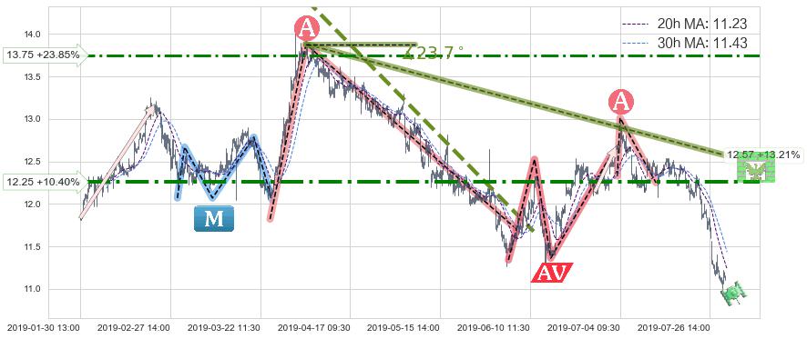 ♘ 阻力价格位13.75,可信任强度55.55%,距离最后交易2019-07-31 15:00形成的收盘价格11.10相差 +23.85%