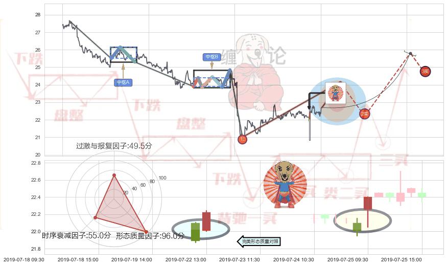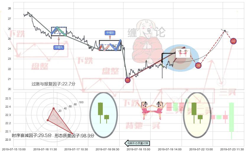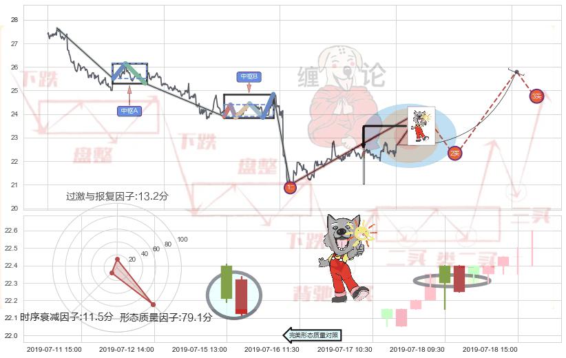 ➢ 🕰 价格走势在2019-07-22 09:30:00至2019-07-22 10:30:00期间形成双针探底,残存影响值:3.43
