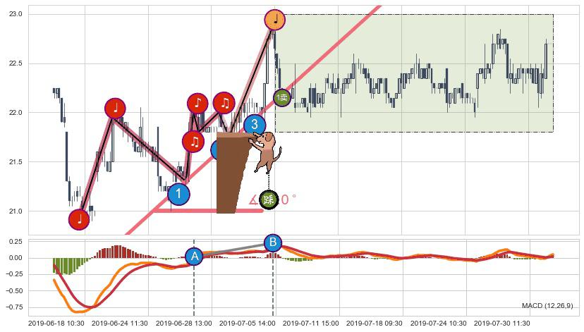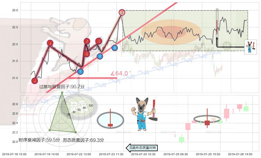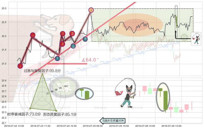 从2019-06-18 09:30至2019-07-26 10:30,共包含164个小时,阶段股价上涨8.05%,阶段股价变动位移路程比: 1 : 7,上涨趋势角度: 64.0