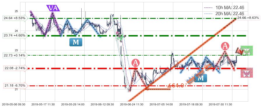 ♘ 阻力价格位23.74,可信任强度91.20%,距离最后交易2019-07-31 15:00形成的收盘价格22.70相差 +4.60%