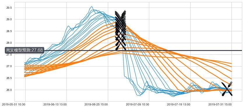 ➣ 70小时均线于(06-28 11:30: 28.94)形成【死叉】基于【死叉历史模型】预测死叉后最低波谷价格: 28.40, 死叉后最低价格25.65,已经下跌超出预测最低波谷价格, 预期反弹