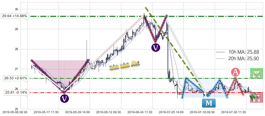♘ 阻力价格位26.53,可信任强度54.28%,距离最后交易2019-07-31 15:00形成的收盘价格25.85相差 +2.61%