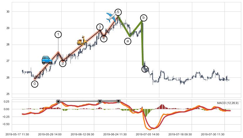 从2019-06-28 10:30至2019-07-31 15:00,共包含137个小时,阶段股价下跌-12.34%,阶段股价变动位移路程比: 1 : 3