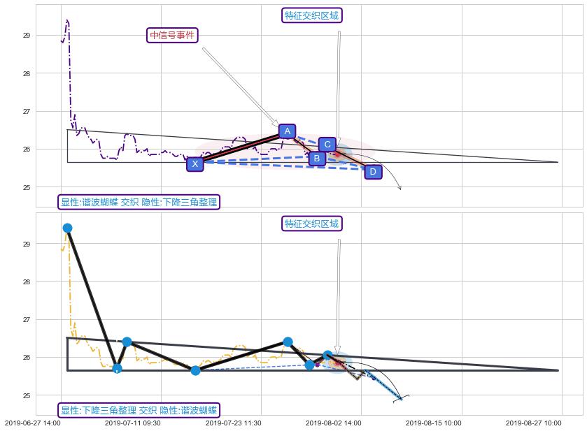 ➢ 谐波蝴蝶属【中级别信号事件】下降三角整理属【长级别信号事件】中长周期组合信号事件,中长事件长度比53.28%