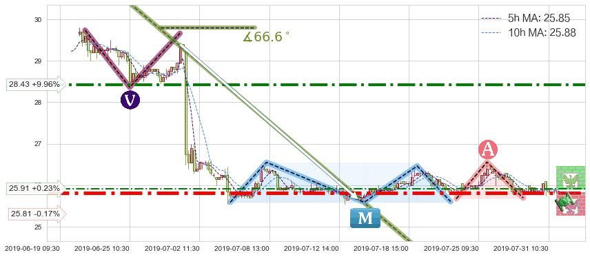 ♘ 支撑价格位25.81,可信任强度87.12%,距离最后交易2019-07-31 15:00形成的收盘价格25.85相差 -0.17%