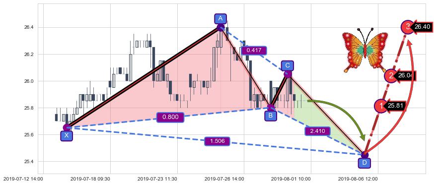 ➣ 未完成【蝴蝶】形态起点X: 07-15:15, 已到达C点: 07-30:15, 预测最终D点: 08-05:14, 共86交易小时