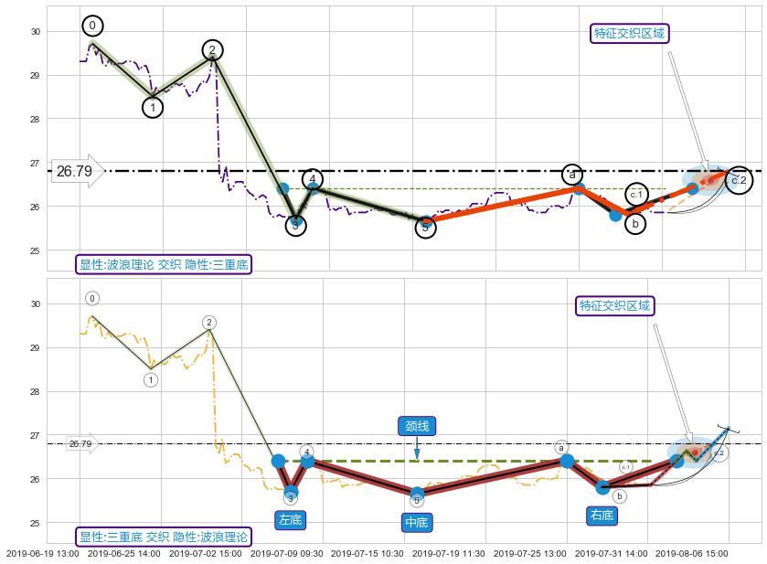 ➢ 波浪理论与三重底信号事件周期长度级别相同,同周期信号事件