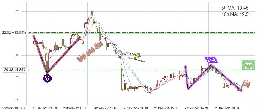 ♘ 阻力价格位22.02,可信任强度52.07%,距离最后交易2019-07-31 15:00形成的收盘价格19.48相差 +13.05%