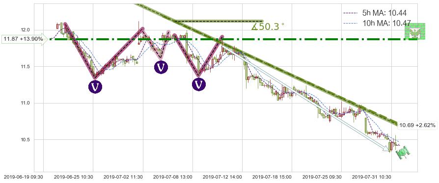 ➣ 预测:2019-08-08 10:00,【继续下探】稳定目前下跌趋势的前提下,预测价格:9.98