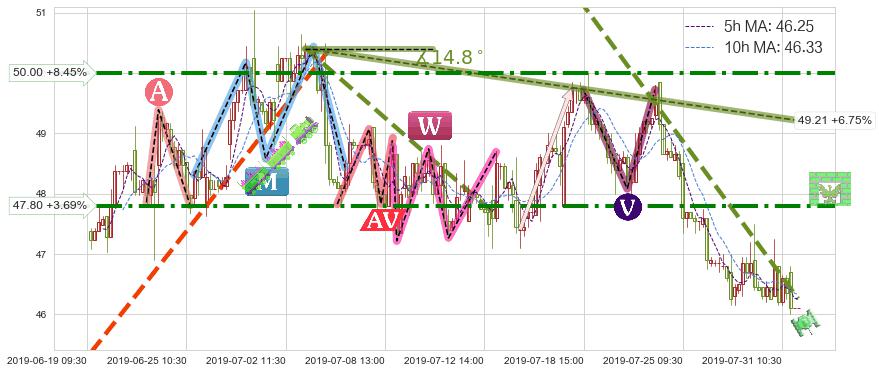 ♘ 阻力价格位50.00,可信任强度72.90%,距离最后交易2019-07-31 15:00形成的收盘价格46.10相差 +8.45%