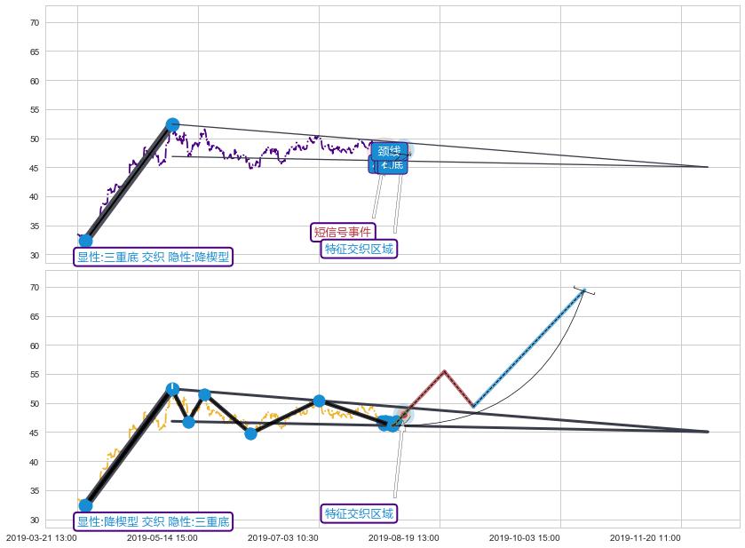 ➢ 三重底属【短级别信号事件】降楔型属【长级别信号事件】长短周期组合信号事件, 短长事件长度比7.24%