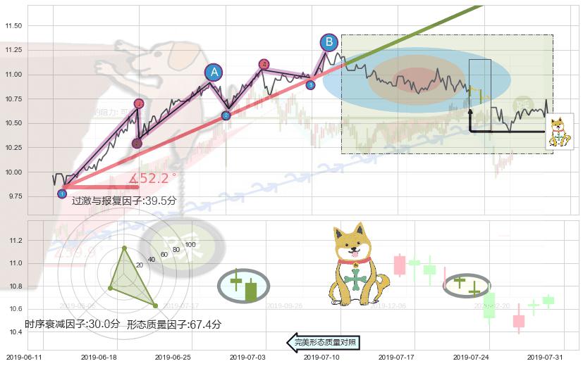 从2019-05-23 15:00至2019-07-04 09:30,共包含164个小时,阶段股价上涨12.03%,阶段股价变动位移路程比: 1 : 4,上涨趋势角度: 52.2