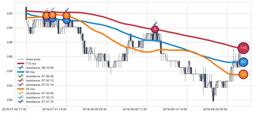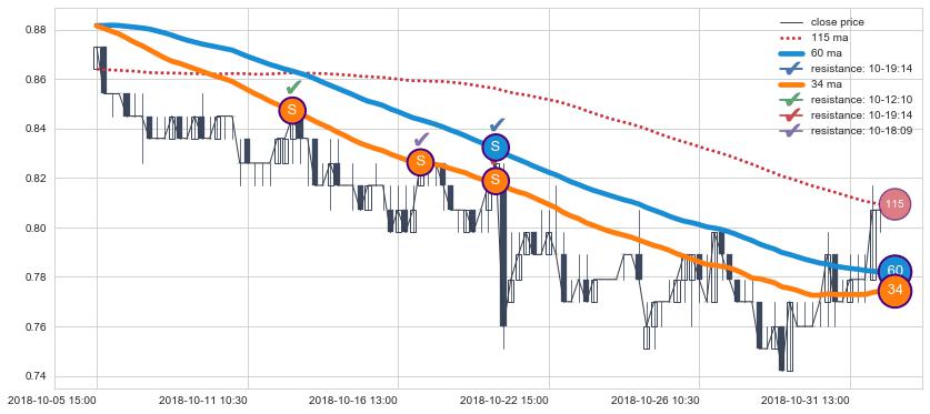➢ 115小时均线于(07-16 10:30: 0.9594)形成【死叉】基于【死叉历史模型】预测死叉后最低波谷价格: 0.8941, 死叉后最低价格0.9300,尚未达到预测最低波谷价格, 预期继续下跌