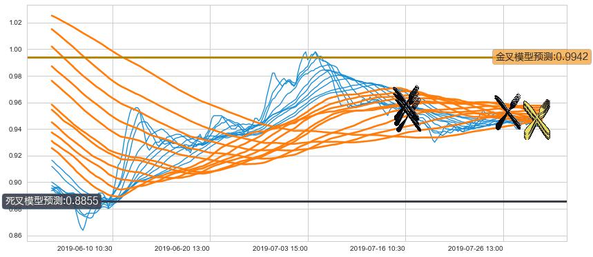 ➣ 200小时均线于(07-26 15:00: 0.9515)形成【死叉】基于【死叉历史模型】预测死叉后最低波谷价格: 0.8843, 死叉后最低价格0.9300,尚未达到预测最低波谷价格, 预期继续下跌