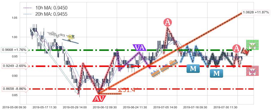♘ 阻力价格位0.9668,可信任强度96.65%,距离最后交易2019-07-31 15:00形成的收盘价格0.9500相差 +1.76%