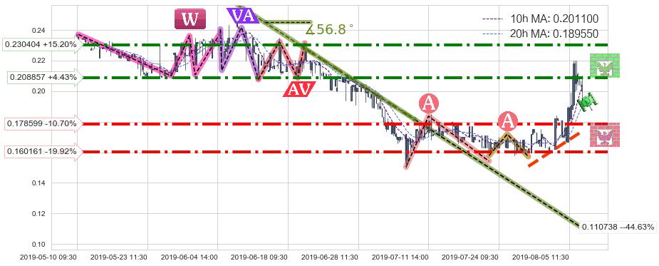 ♘ 阻力价格位0.208857,可信任强度75.63%,距离最后交易2019-08-06 15:00形成的收盘价格0.200000相差 +4.43%