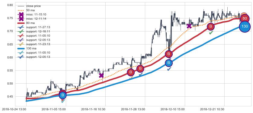 📝 多条均线形成死叉后走势最低价格达到: 0.8700