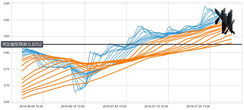 ➢ 80小时均线于(07-30 15:00: 0.8909)形成【死叉】基于【死叉历史模型】预测死叉后最低波谷价格: 0.8142, 死叉后最低价格0.8700,尚未达到预测最低波谷价格, 预期继续下跌