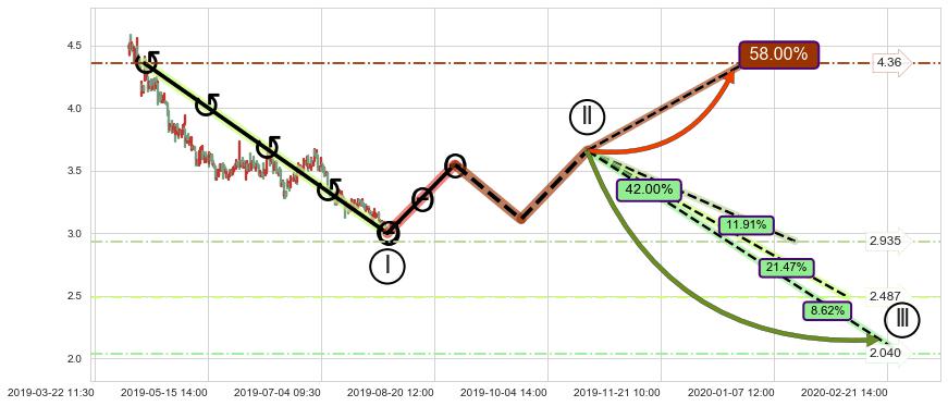 ➣ 大趋势循环浪继续向下概率42.00%
