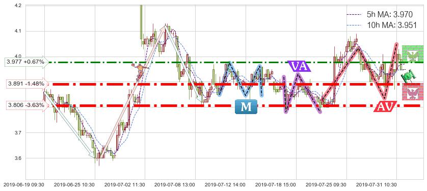 ♘ 阻力价格位3.977,可信任强度63.69%,距离最后交易2019-07-31 15:00形成的收盘价格3.950相差 +0.67%