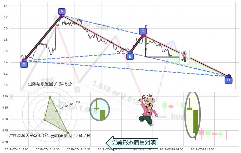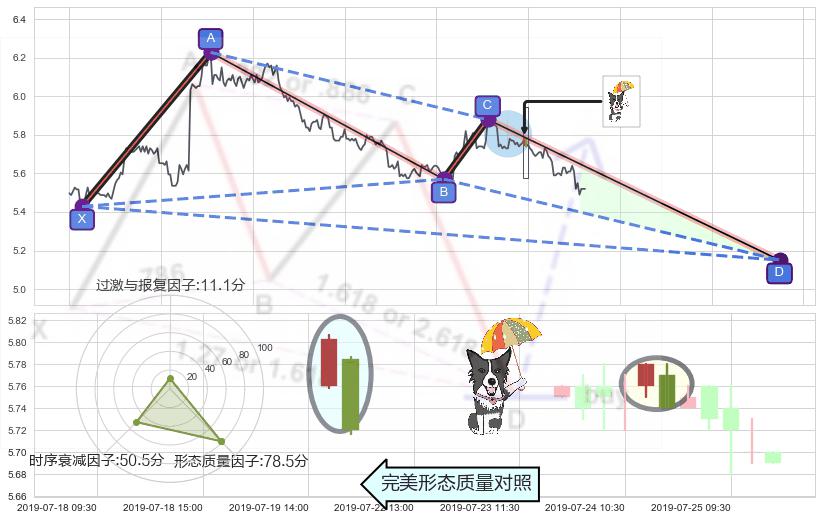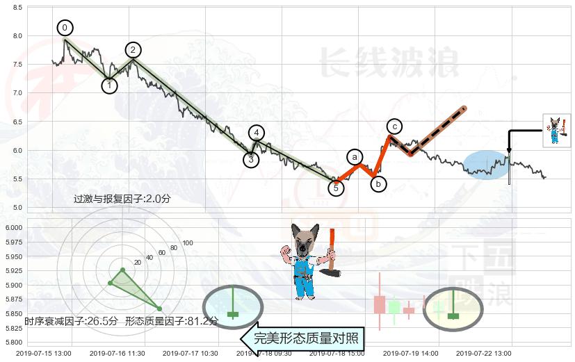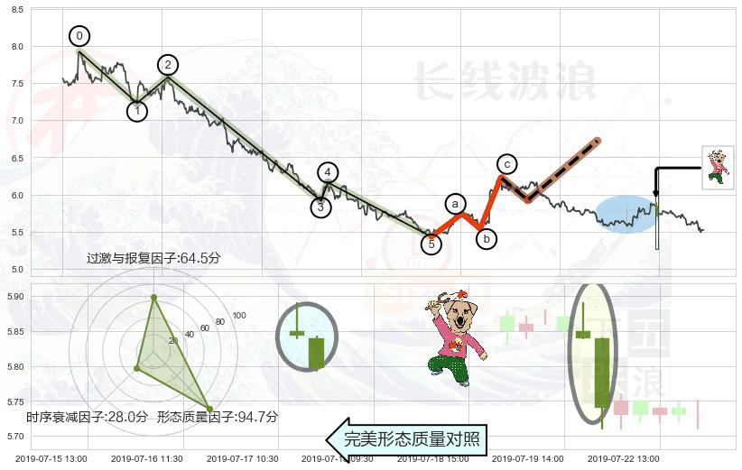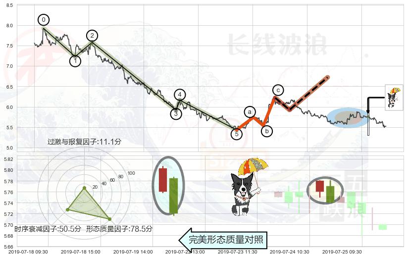 ➢ 🕰 价格走势在2019-07-22 00:00:00至2019-07-26 00:00:00期间形成高档五阴线,残存影响值:-4.44