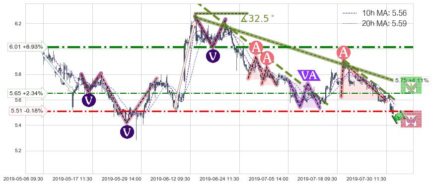 ➣ 预测:2019-08-28 11:00,【试探阻力】稳定目前下跌趋势的前提下,预测价格:5.46