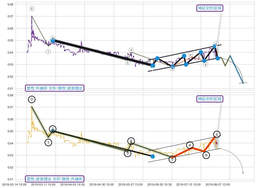 ➣ ['回调abc识别为: 【锯齿型调整浪】 ', '锯齿型:子浪535结构 ⓑ点振幅较小,ⓒ点继续发力远超ⓐ点结束位置']