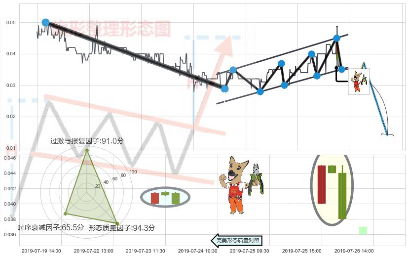 ➢ 🕰 价格走势在2019-07-25 15:00:00至2019-07-26 10:30:00期间形成下跌镊子线(n形磁铁),残存影响值:-3.73