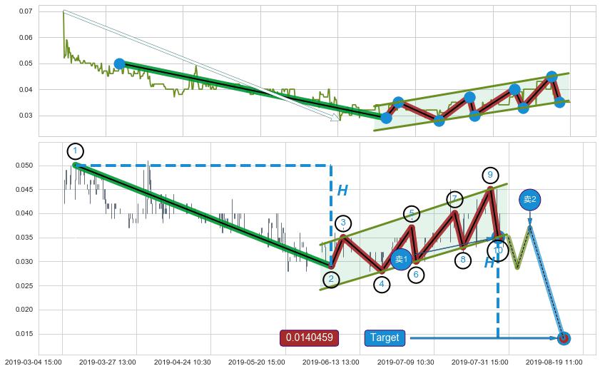 ➣ 最小中继整理跌幅→𝐇: 0.0210000 (𝐇旗杆的长度:旗杆起点→顶点)
