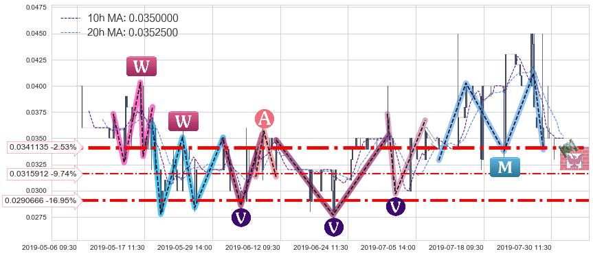 ♘ 支撑价格位0.0341135,可信任强度96.87%,距离最后交易2019-07-31 15:00形成的收盘价格0.0350000相差 -2.53%