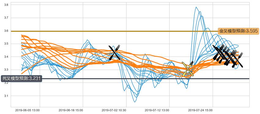 ➢ 55小时均线于(07-25 15:00: 3.433)形成【死叉】基于【死叉历史模型】预测死叉后最低波谷价格: 3.292, 死叉后最低价格3.220,已经下跌超出预测最低波谷价格, 预期反弹