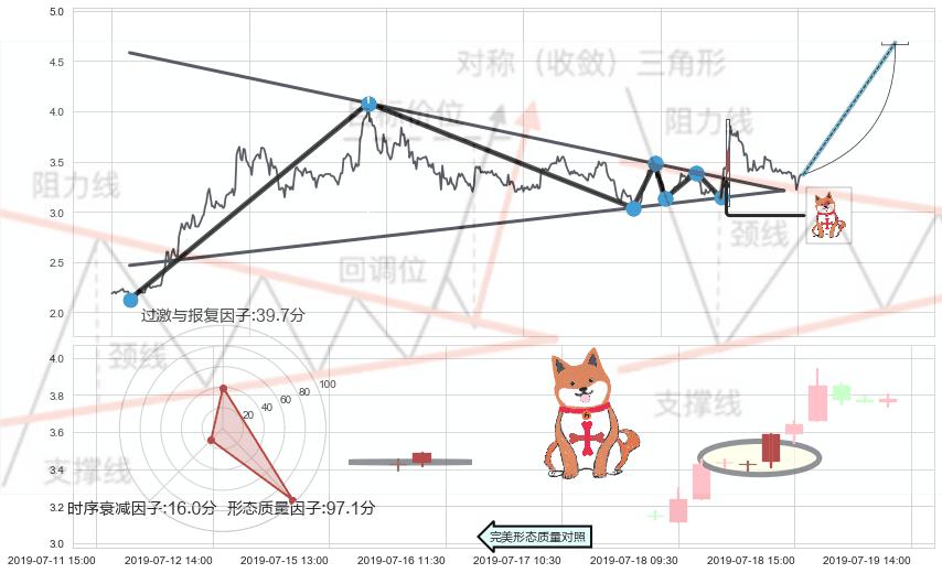 ➢ 【买1】: 激进型 买点 →(07-18:10: 3.336 )形成突破上升【对称】三角形整理【整理】形态