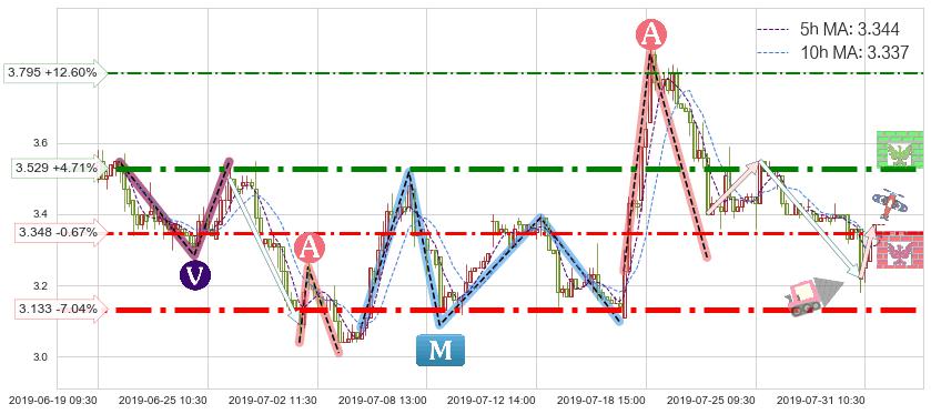 ♘ 阻力价格位3.529,可信任强度88.85%,距离最后交易2019-07-31 15:00形成的收盘价格3.370相差 +4.71%