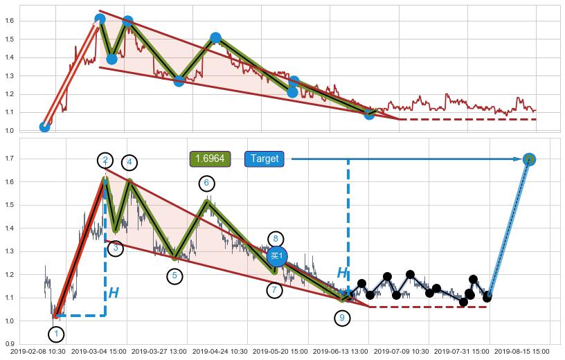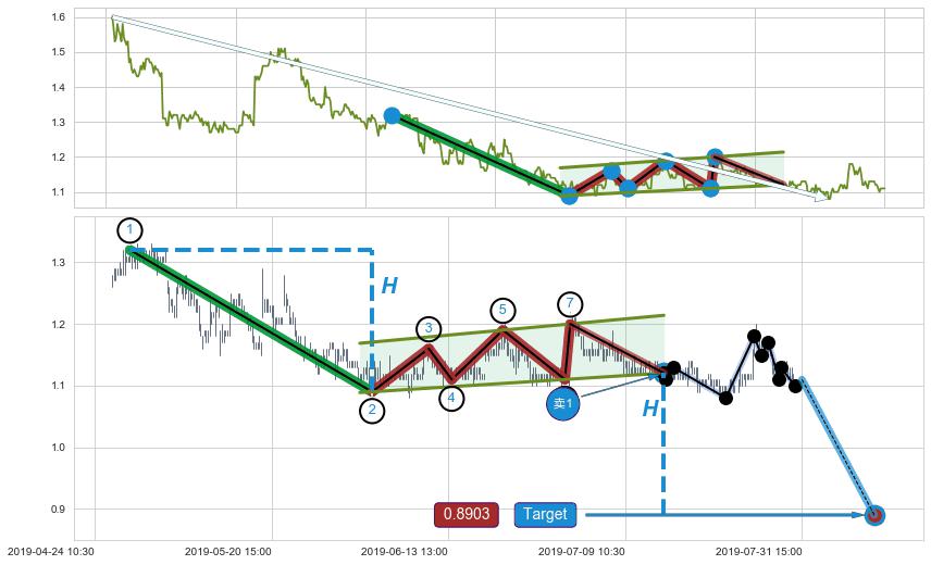➣ 最小中继整理跌幅→𝐇: 0.230000 (𝐇旗杆的长度:旗杆起点→顶点)