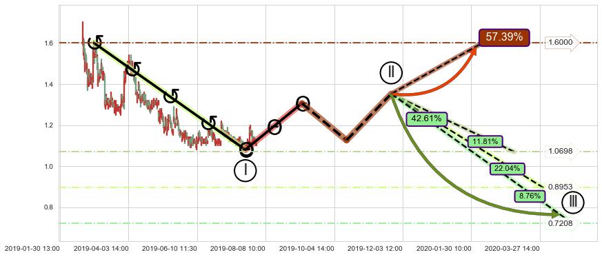 ➣ D点拟合预测价格0.7172,距离最后交易收盘价格1.1100相差 -35.39%