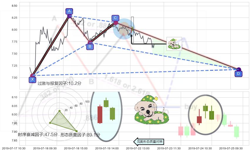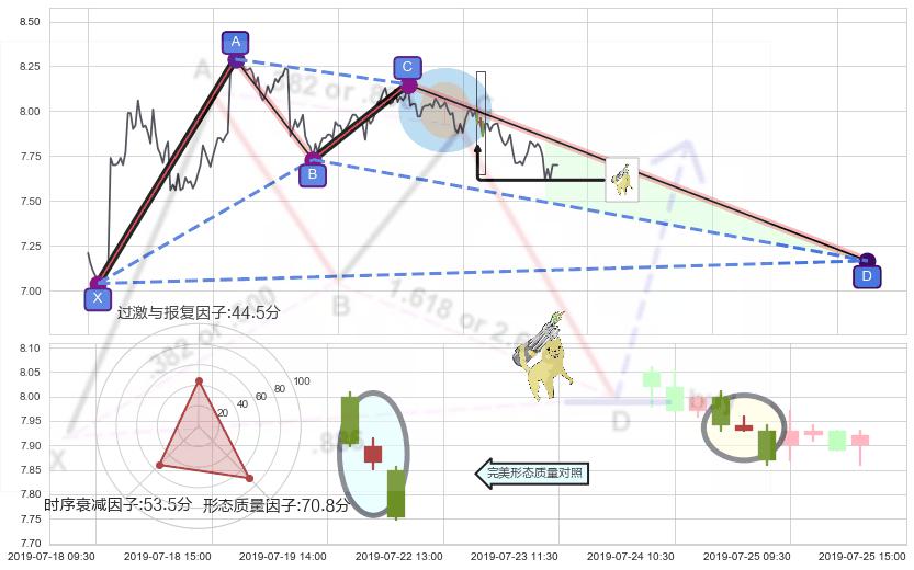 从2019-07-02 11:30至2019-07-31 15:00,共包含130个小时,阶段股价下跌-7.06%,阶段股价变动位移路程比: 1 : 8,下跌趋势角度: 42.9