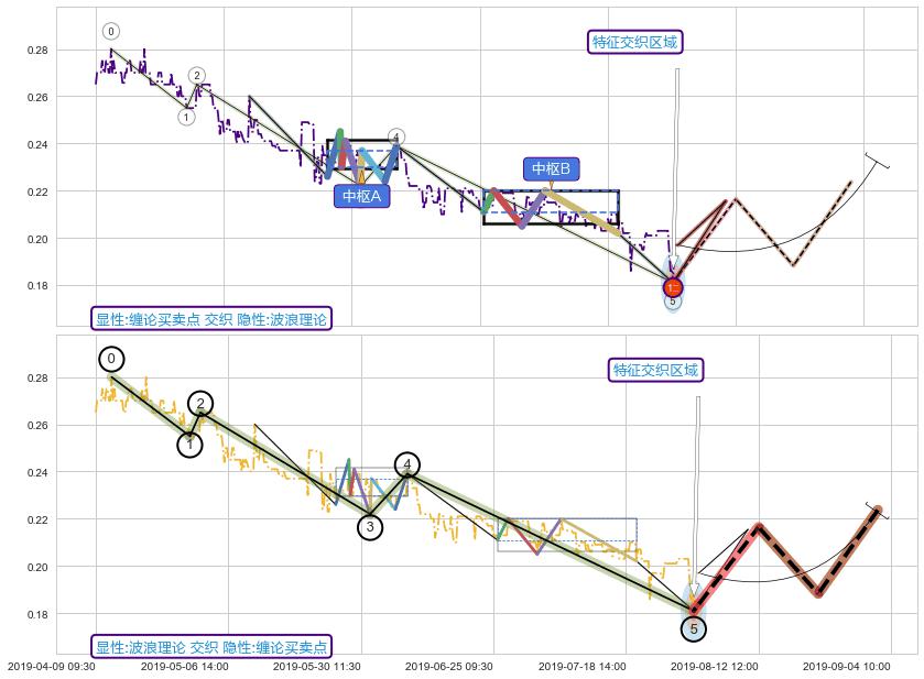 ➣ 缠论买卖点:下降缠中枢AB形成后猜想拐点1买已到达,猜想后续持续拉升(均值回复)