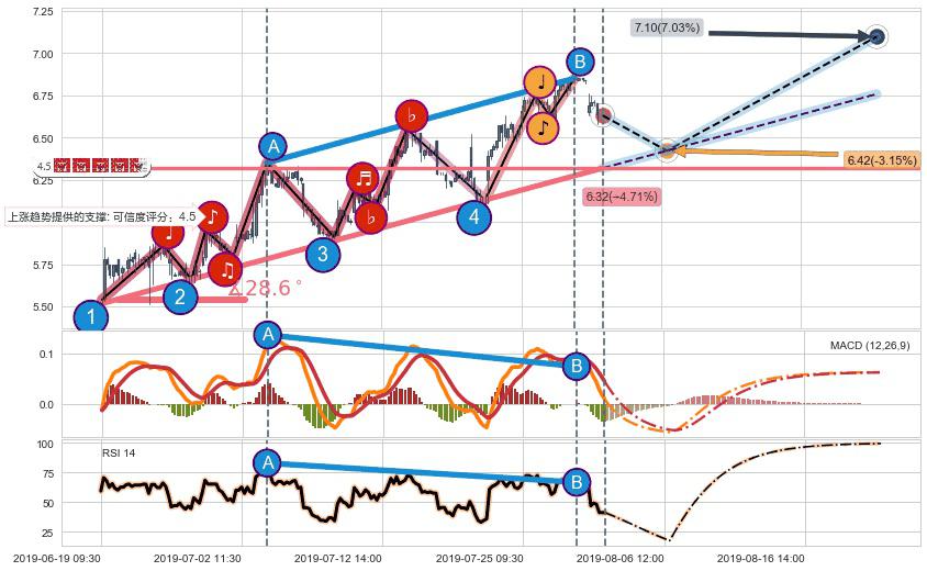 ♘ 支撑价格位6.32,可信任强度65.96%,距离最后交易2019-07-31 15:00形成的收盘价格6.63相差 -4.62%