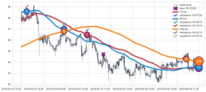 📝 多条均线形成死叉后走势最低价格达到: 45.75