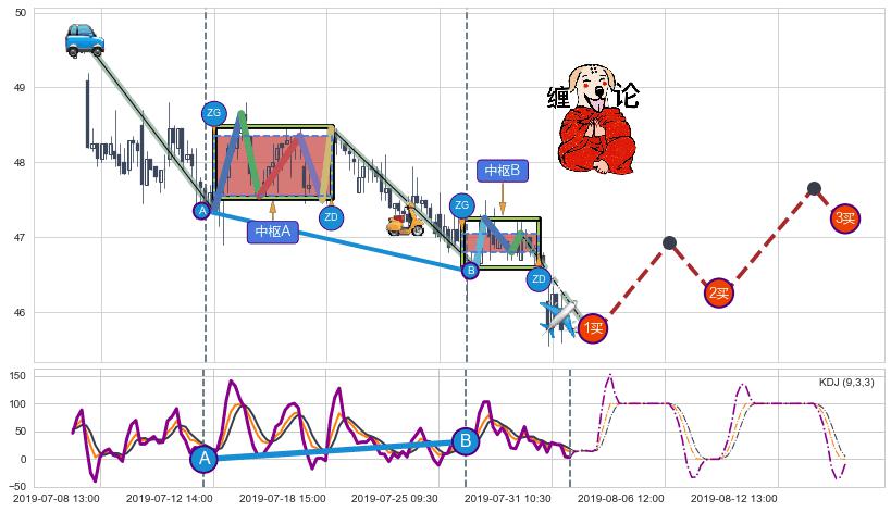 ➣ 【未完成】缠论 起点:07-05:15, 完成第1中枢A,完成第2中枢B,到达07-31:15