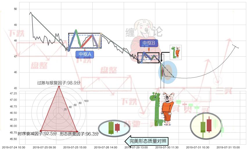 ➢ 【中枢B】:07-26:11-07-30:09,中枢由4笔构成,共11交易小时, ZG=47.05, ZD=46.80
