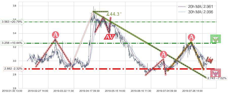 ♘ 支撑价格位2.882,可信任强度92.30%,距离最后交易2019-07-31 15:00形成的收盘价格2.950相差 -2.32%