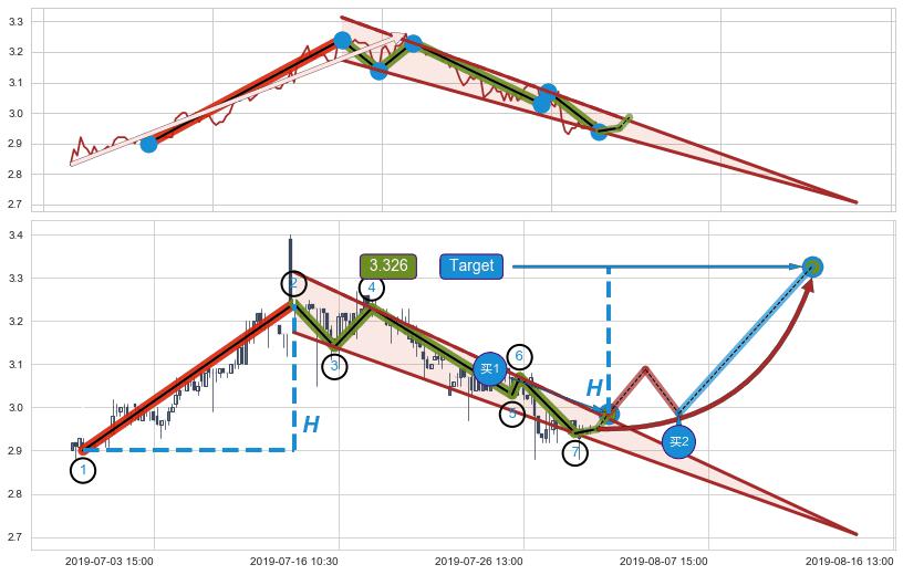 ➢ 最小中继整理涨幅→𝐇: 0.34000 (𝐇楔型旗杆的长度:楔型起点→顶点)