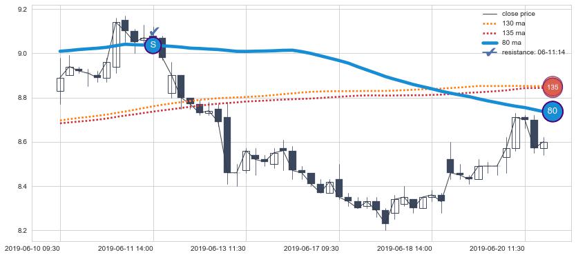 ➣ 80小时均线于(07-19 14:00: 8.46)形成【金叉】基于【金叉历史模型】预测金叉后最高波峰价格: 9.06, 金叉后最高价格9.29,已经上涨超出预测最高波峰价格, 预期回调