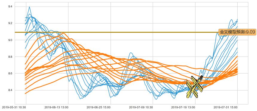 ➢ 90小时均线于(07-19 15:00: 8.49)形成【金叉】基于【金叉历史模型】预测金叉后最高波峰价格: 9.12, 金叉后最高价格9.29,已经上涨超出预测最高波峰价格, 预期回调