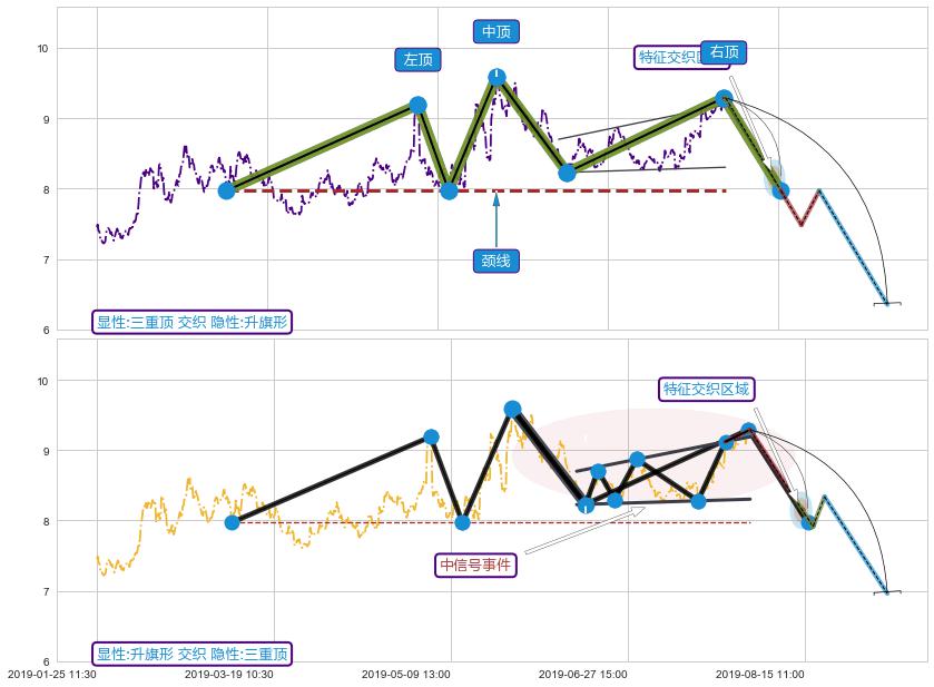 ➢ 升旗形属【中级别信号事件】三重顶属【长级别信号事件】中长周期组合信号事件,中长事件长度比37.55%