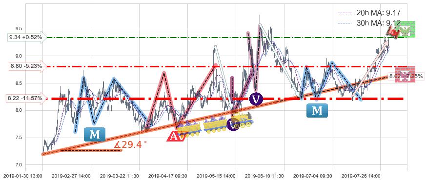 ♘ 支撑价格位8.80,可信任强度69.29%,距离最后交易2019-07-31 15:00形成的收盘价格9.29相差 -5.23%