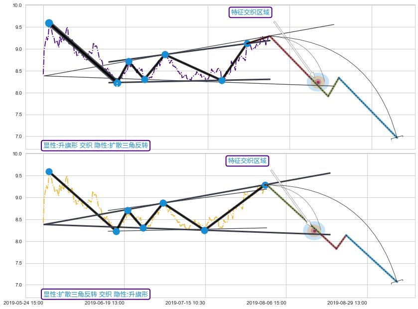 ➣ 扩散三角反转:猜想临近关键支撑位突破点 → 临近拐点下跌 → 风险信号 → 大趋势均值回复